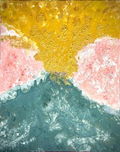 Acryl gold, türkis, kupfer vertikal auf Leinwand 50x40cm €111,- +Versandkosten